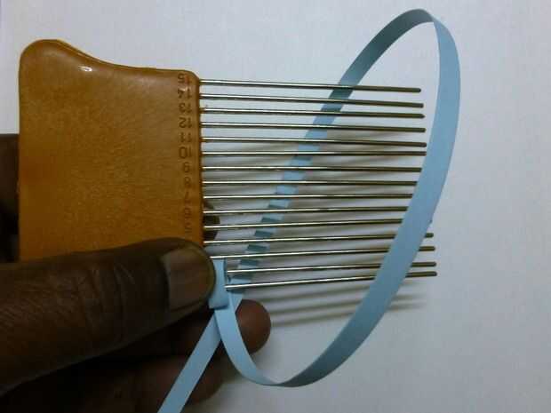 • Tejido de la cinta sobre el peine a lágrima forma. Usted necesita cuidado aquí. Cuando atribuimos esta lágrima entre las formas de 'V', la altura debe ser nivel con la parte superior del ya formado vertical