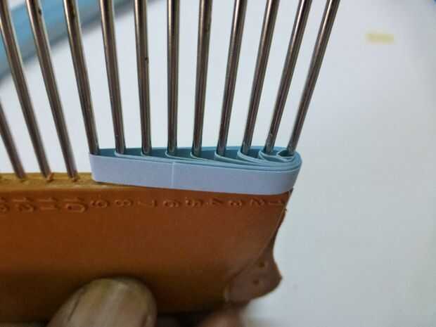 • Rodar sobre el diente final del peine quilling y aplicar el pegamento