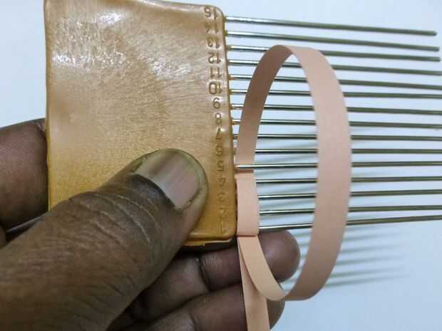 • Viento sobre el peine para hacer lágrimas. Longitud será igual a la vertical blanca, que es hasta el diente 9