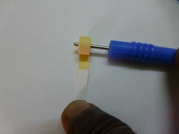 • Con la herramienta de ranurado, enrolle la cinta amarilla para hacer una bobina apretada