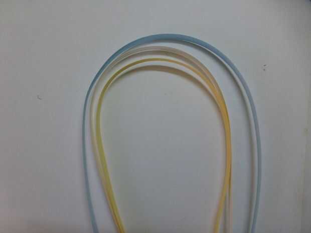 • Tome un pedazo de amarillo, blanco y azul quilling cintas