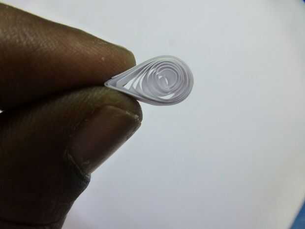 Este paso es igual que el anterior, pero vamos a usar la cinta blanca para hacer las lágrimas y colocarlos en los huecos restantes con el extremo angosto hacia