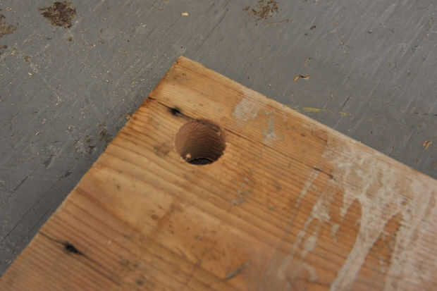 Taladro algunos en 1 agujeros en los extremos. Deja sobre un 1,5 en cada borde para que la duela no actúa sobre usted cuando usted haga. Debe tener un agujero en cada esquina para alimentar la cuerda a través de