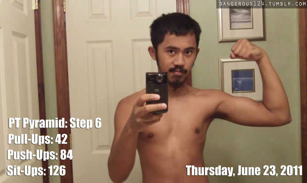 -La pirámide normal tiene seis pasos. Para cada paso, multiplicas ese número paso con cada ejercicio.