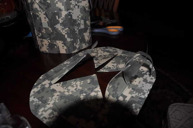 6. Ponga cinta sobre cada franja y en el tubo con cinta adhesiva.