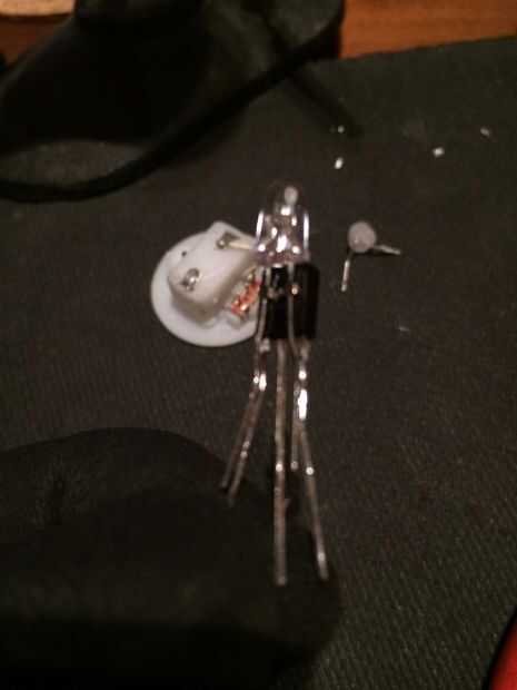 Al soldar las piezas juntas, no utiliza una Spotwelder de fuerza Industrial pero un soldador modesto regular. Los componentes normalmente pueden manejar varios segundos de 250 grados C elsisus a 1 cm de distancia del cuerpo, pero sobrecalentamiento ocurre antes de saber todo... ser precisos y escríbenos un email. Soplar aire en él para enfriarlo, lo que ayuda un poco.