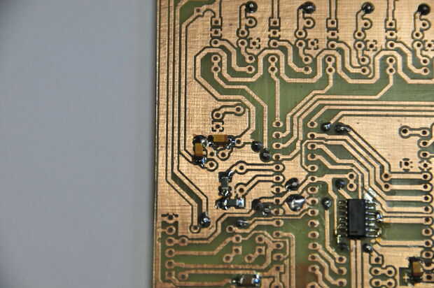 Usé las piezas de montaje en superficie para algunos de los componentes. Estos fueron soldados en la parte posterior de la Junta siguiente. Estos componentes son fáciles de soldar y es bien vale la pena tomar el esfuerzo de conseguirlos soldado - como lo hago cada vez más de ellos, me estoy encontrando más fácil y más fácil.