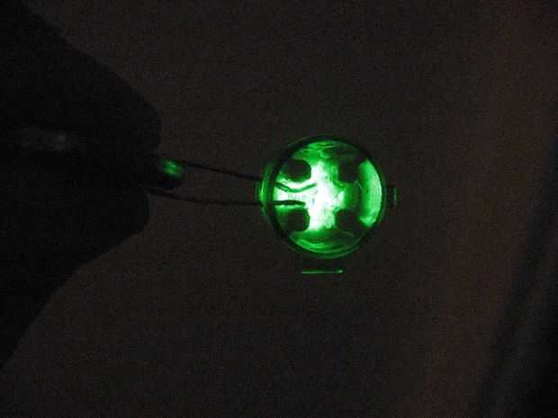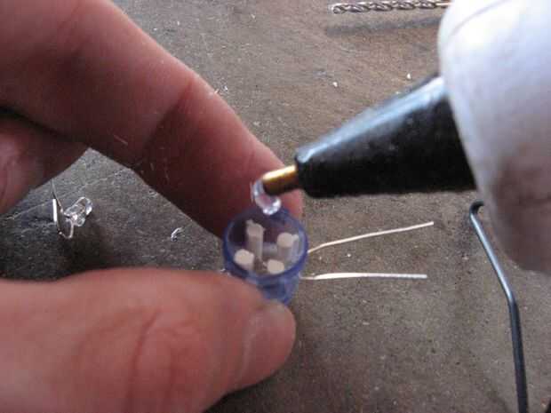Si tienes una pila de botón 3v prueba para asegurarse de que el LED se enciende. Cuando que trabaja, se meter la boquilla de la pistola de pegamento caliente en el botón y tire del gatillo, el LED y sus piernas en lugar de bloqueo. Pero asegúrese de no tener pegamento en la cima de los pilares.
