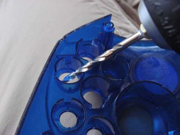 Sólo trate de colocar un botón en su ranura respectiva y quite cualquier cubierta donde irían las piernas. Presione la broca lateralmente contra la carcasa para eliminar plástico. El botón debe ser capaz de descansar en su ranura sin las piernas toca cualquier parte de la carcasa o impidiendo su movimiento. Si tienes un par de cortadores de alambre puede ayudar a cortar la carcasa después de la perforación. Repita para los cuatro botones, deberían ayudar las imágenes de abajo.