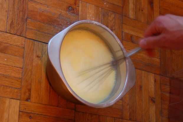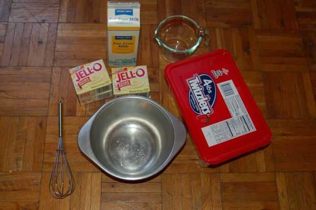 Siga las instrucciones de caja de mezcla con leche, batir por un minuto por la caja de pudín, combinan todos con leche en el recipiente más grande.