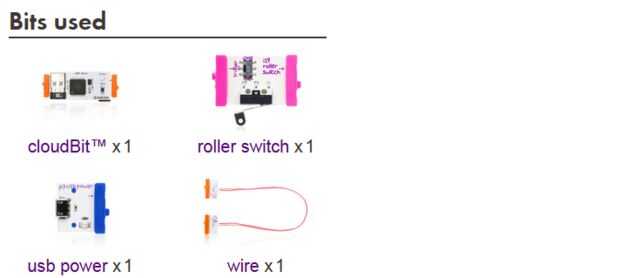 Conseguir todos estos bits, incluyendo el cloudBit de littleBits aquí.