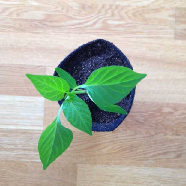 Rellenar el calcetín con el suelo y añadir una planta. En este caso he puesto una planta de chiles en la parte superior, pero puede agregarlo que gustes.