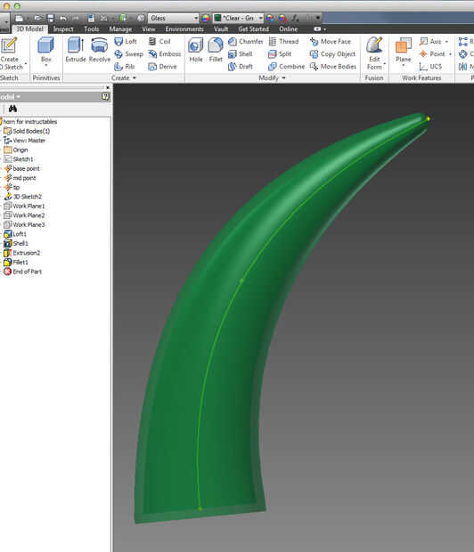 Para aquellos que ya están familiarizados con el Inventor, aquí está un muy breve resumen de cómo fue dibujado el cuerno: