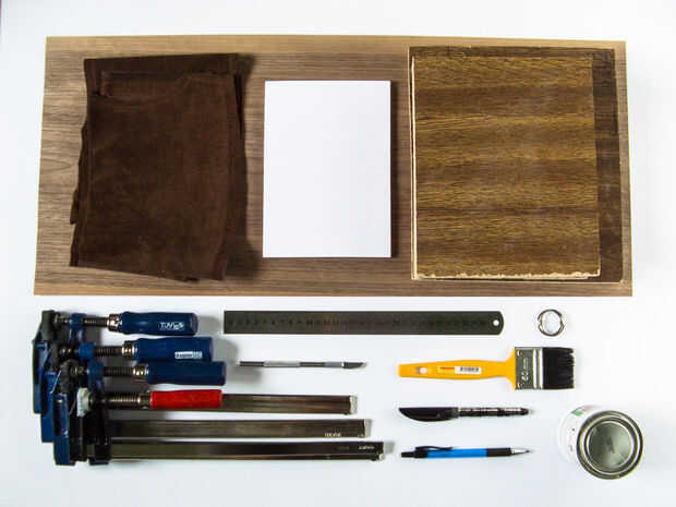 Chapa de madera, en mi caso - nuez (área de por lo menos 4 x el tamaño de la cubierta deseada);