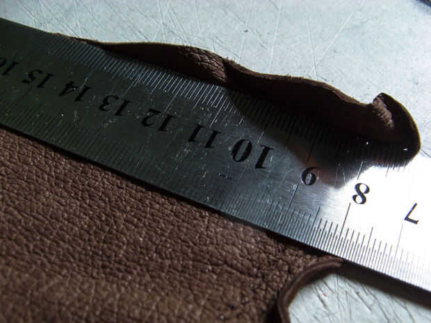 Encontrar piezas de tamaño decentes de chapa de madera y cuero. La cubierta se hace pegando una capa de cuero con dos capas de chapa de madera que tienen una dirección de grano perpendicular entre sí para evitar la deformación de las cubiertas. En cuanto a la piel - usted tiene que decidir de qué lado se desea visible. El cuero que he usado tenía un lado hermoso ante suave que parecía y se sentía mucho mejor que el otro así que me fui con eso.