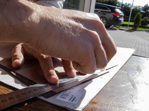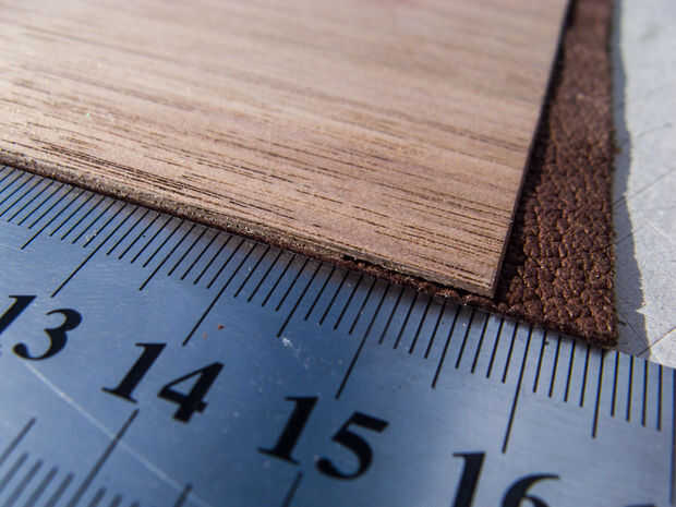Si después de cortar las cubiertas que puedes ver que el cuero y el pegamento no es perfectamente pegadas en algún lugar (muy real cuando se utiliza pegamento blanco) toma algo fuerte - como un palillo de dientes y con la ayuda de eso Aplique pegamento entre las capas de la problemáticas. Si cabe, puede utilizar el largo cuello super pegamento tiene para su aplicación, sólo asegúrese de no poner pegamento en las zonas visibles de madera o de cuero (lados no importa mucho) porque esos puntos serán visibles y pueden arruinar el look.