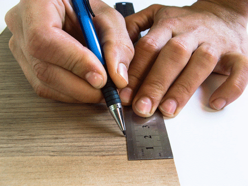 Una buena forma de hacer líneas perpendiculares sin un cuadrado es utilizando una regla que tiene marcas en ambos lados: primero establecer a lo largo del borde y marcas en distancias previstos, luego coloque el otro lado de la regla con distancias a los puntos de coincidencia y hacer más manchas en la parte donde no hay ninguno. Si usted repite que varias veces allí será como 4 puntitos en línea sobre la que dibujar las líneas en la parte superior y la inferior para el corte y posterior corte a lo largo de las líneas. El gif en este paso debe explicar si es necesario.