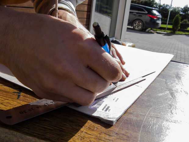 Ajuste sí mismo es una cosa bastante simple. Coger un cuchillo afilado y delgado - prefiero x-acto con una cuchilla redondeada para esto. No es una mala idea tomar una hoja fresca ahora si ha utilizado no parece demasiado agudo más (usted puede conseguir más vida a los usados con una piedra de afilar cerámica lisa por supuesto). Para el primer corte no hay en nada de la marca - globo ocular un corte algo recto (regla de uso para el corte, por supuesto) en un lugar donde todas las 3 capas. Si usted quiere deshacerse de algun pegamento que usted tiene en la tapa o algo más malo - primer corte es el tiempo para hacerlo. Después de que ya tienes el primer corte realizado, marcan dos líneas van perpendiculares al corte primera que en mi caso son 215 mm..