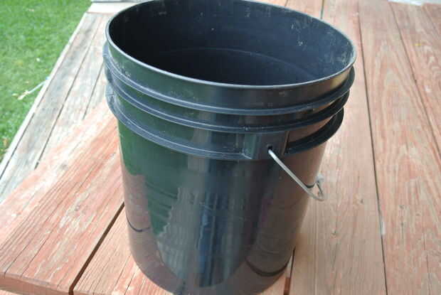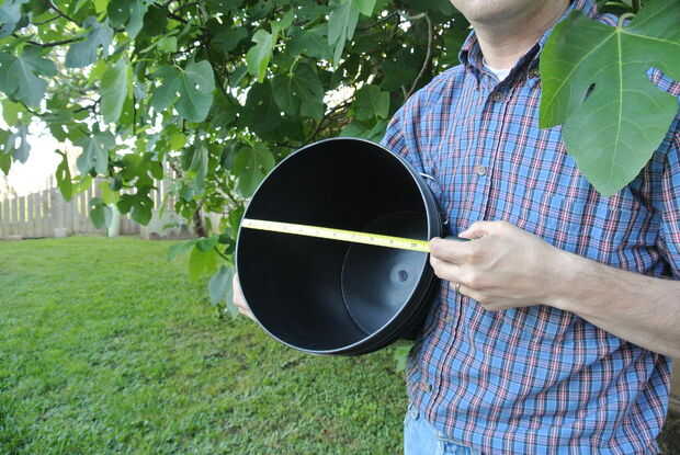 Haz un cubo de cinco galones.  Utilice una cinta métrica para encontrar el interior diámetro.  Mi cubo diámetro interior había medido 10 5/8 pulgadas.