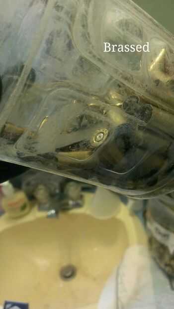 Se muestra aquí son dos métodos que he usado. Los métodos son los mismos, la única diferencia es en los medios utilizados. Usted pondrá sus partes una a la vez (una parte por ciclo, muy importante, ya que el acero sobre acero puede resultar en daño!) en su "vaso" y sus medios. Usted puede utilizar piedras o casos de latón. Una vez hecho esto, dar todo dentro de un spray muy liberal de WD-40/PB, o una mezcla de agua y plato de jabón (cuchara de sopa total?). De cerca su envase y cierra de cinta.