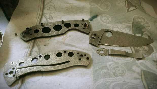 Todas las piezas ahora deben limpiarse de cualquier resistencia restante y la suciedad de sus medios de agitación. Omitiendo esto le dejará con un cuchillo muy "valiente", que no se abre correctamente. Comenzar aclarando bien con agua y jabón, limpiar la suciedad y aceites. Uso de guantes frescos y acetona (a este punto no necesita guantes, pero acetona puede ser muy secada a su piel), eliminar todos los restos de esmalte de uñas usando toallas de papel, Q-tips, lo que tienen a mano. Seguir adelante y volver a montar las cuchillas. Compruebe su pivote para esa sensación arenosa, si está allí, lo desarma y limpia otra vez. Una vez que tienes todos limpiados, recomiendo threadlocker (medio/azul?) en todos los tornillos, pero algunos dicen que es un sacrilegio. Ajustar el tornillo de pivote a su tensión de apertura preferida, y hoja de verificación se centra. Permita que la cantidad correcta de tiempo para el enganchador de roscas fijar.