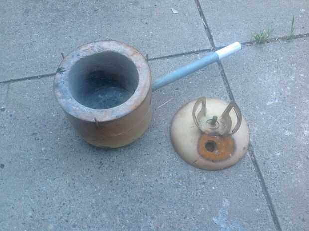 - El horno: Sin duda la parte más importante, salvo para el aluminio se derrite, el horno derretirá su metal y mantenga el calor del combustible en. Esto puede ser (con menor desempeño) tan simple como una pintura con un agujero en la parte inferior del lado para soplar aire en a través de una tubería. La mina, sin embargo, se corta tanque de helio de partido en la parte superior, con 2" de un cemento refractario hecho de arcilla y arena. Tiene una tubería de 2" de acero viene cerca de la parte inferior del lado para suministrar aire adicional a la combustión de carbón en el tanque. La tapa del corte tiene un agujero en la parte superior de los gases de escape. Encontrar más info sobre esto en: