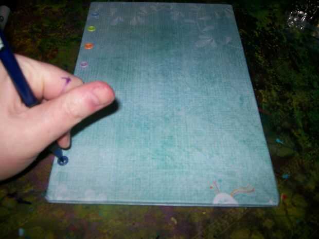 Con el lápiz, marca un punto pequeño en la tapa donde van cada agujero, también va a añadir ojales después de perforar los orificios. Perfore los agujeros utilizando un cultivo-o-dile u otro puncher de agujero grande y agregar los ojales.
