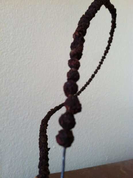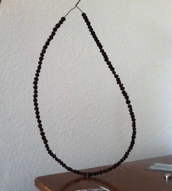 Mi hijo tuvo que hacer un rosario de cosas que estaban alrededor de la casa. Tuercas y arandelas, legos, palomitas etc.... todo hecho antes. Mi esposa vio que un florero lleno de turcos cabeza nudos que he atado sobre los años y que era él.En cuanto