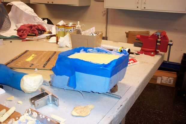Un simple y barato "agua masilla" fue utilizado para lanzar el producto final. El polvo y el agua se mezclaron a una consistencia de masa de panqueque y vierte en el molde de nivel.