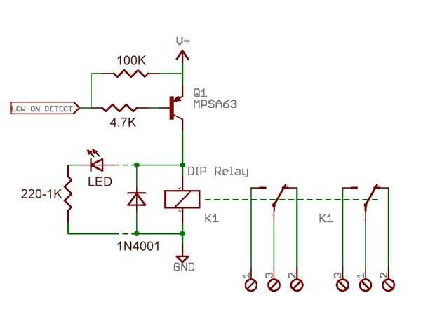 He usado el siguiente circuito y resulta muy versátil. Usted puede colgar varios detectores de él y tire el relé si alguno de ellos ve un objeto.