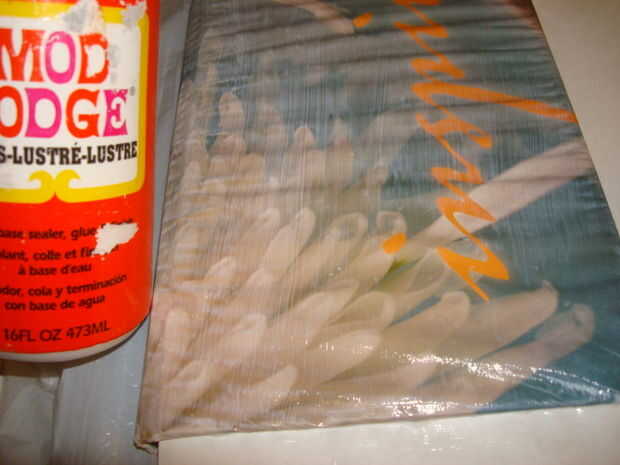 Por favor, observe las fotos. Cuando cubierto capa sobre el libro clara el libro pongo dos capas de Mod Podge. La primera capa funcionó OK pero la segunda capa hizo la página de la hebilla como se puede ver en la imagen. El libro secos con hebillas de a pocos por lo que he intentado borrar la capa de la cubierta de libro antes de introducirlo al libro y funcionó muy bien! Así que si vas a usar Mod Podge hacer ahora para el libro de portada. Puede que necesite mojar arena entre capas con papel de lija fino. Siga las instrucciones en la botella de Mod Podge. Utilicé un acabado brillante y se mostrará imperfecciones, así que si usted no ha usado este producto. Recomiendo la capa plana que tiene un leve brillo.