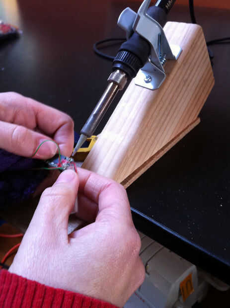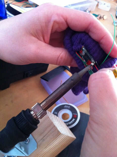 Aquí está mí soldar, con la plancha sostenida por mi hermosa nueva herramienta. Funcionó muy bien!