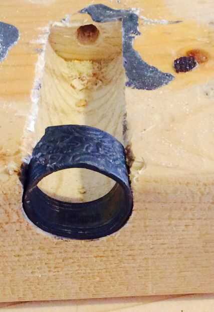 Calentar el anillo de la amortiguación es por inmersión en agua, esta endurecerá el metal. Poner el anillo en la plantilla, centro de la manija y soldar los extremos entre sí.