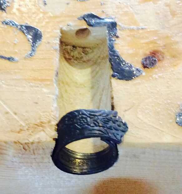 Comienza a forma el anillo alrededor de un vástago o espiga. Hacer esto hasta que el anillo se ajuste en la plantilla perfectamente.