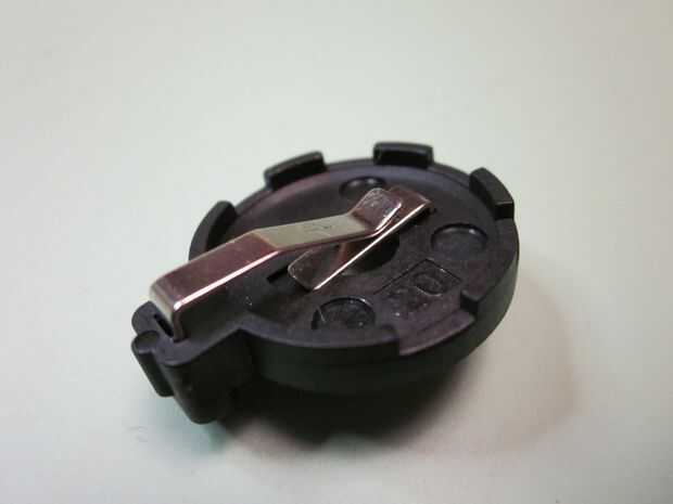 -Una CR2032batería y soporte de la batería . El mío es el tipo de clip, esto ayuda ya que se le resiste caer hacia fuera. La celda de moneda CR2032 fue elegida porque es el más común y tiene una energía suficiente de alrededor 220 mha, que debería dejar que el frisbee a durar un tiempo de dos LEDs. Miré en una batería recargable de sparkfun aquí pero no parece vale la pena el gasto al final.