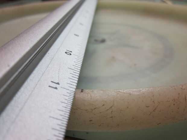 -En primer lugar marcar dos puntos opuestos en el disco volador con una regla, directamente perpendicular a su sostenedor del clip de batería. Esto es donde van tus LEDs. Aunque no hago esto, te recomiendo que marca en la parte superior y la parte inferior del LED se va, así que asegúrese de que estén directamente enfrente de uno a.
