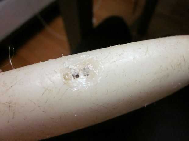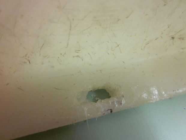 -El calor de tu soldador y ve a la ciudad. Recomiendo usar el método de "scoop" de cavar el agujero para el LED. Esto es porque va a utilizar el plástico sobrante más adelante y (como se puede ver en las fotos) se pueden apilar fácilmente al lado del agujero. Además, el borde de ataque es demasiado profundo para ir estrecho a través de su punta, por lo menos al principio. Esto y, le llevará mucho tiempo. La ventaja de utilizar una pequeña cabeza de punta soldador es que puede hacer el LED encajan muy bien en su agujero. El método de "cuchara" se hace exactamente como suena, sólo empujar un montón de plástico en un área y levantar fuera del agujero. Tomar la pelota de plástico a su soldador y a colocarlo en otro lugar. Usted puede colocarlo en el frisbee, como lo hice, o se puede obtener un pequeño trozo de madera sobrante y limpiar el plástico en. El plástico puede ser pelado o derretido fuera para su uso posterior.