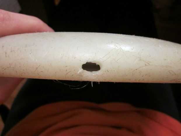 De todos modos, en las cosas buenas, como dije esto es bastante sencillo, se fusión agujeros en los extremos opuestos de la frisbee, luego sellado con plástico que quitado, lo que es todavía "siente" como un frisbee normal. Por lo tanto: