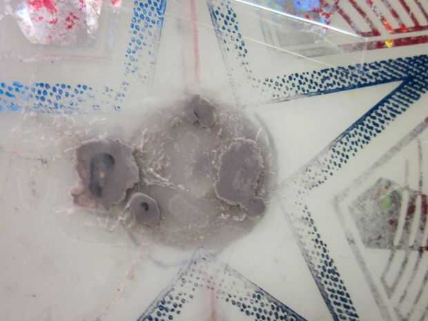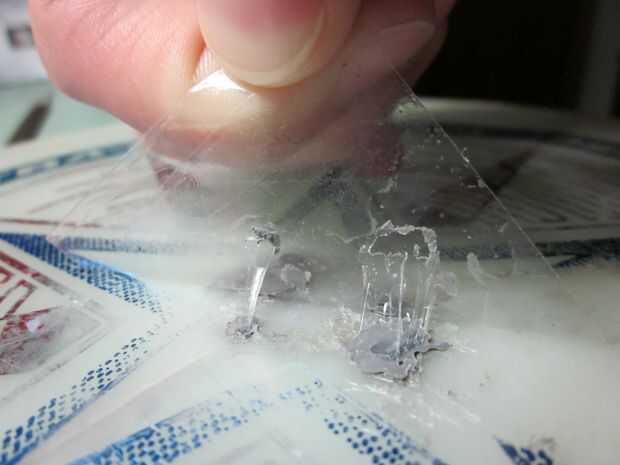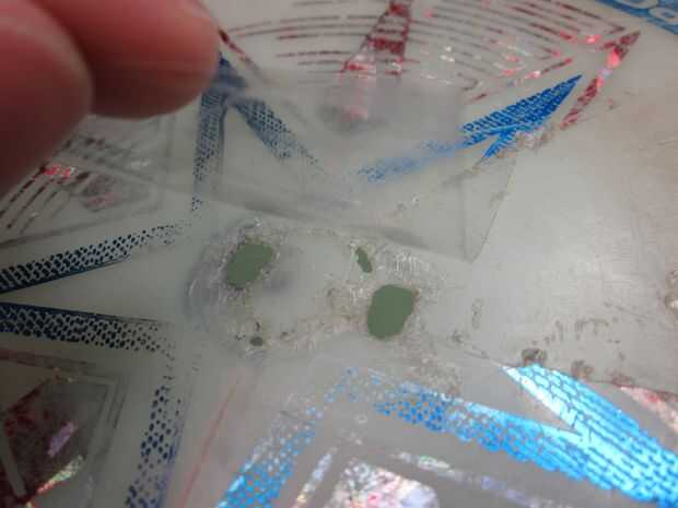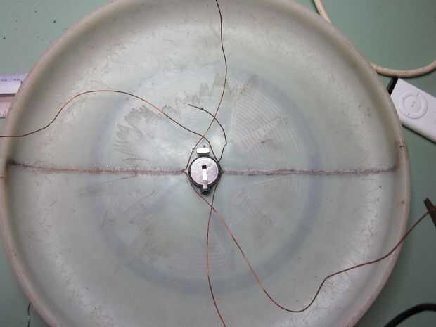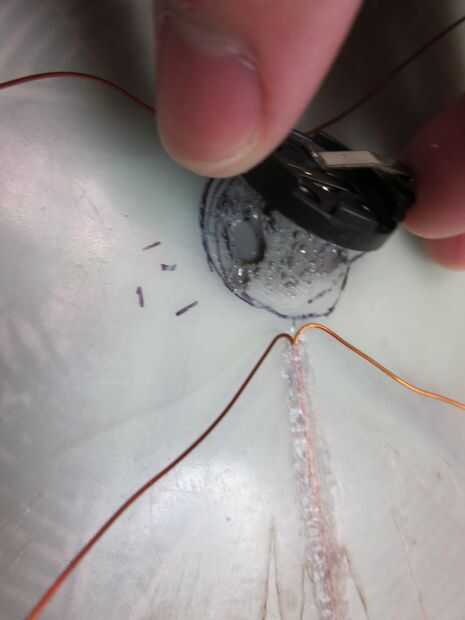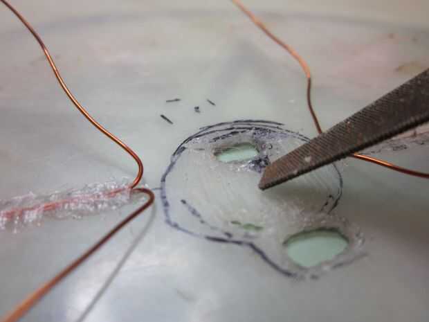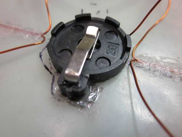 -Desbaste el lugar debajo de la batería. Pegamento pega a mejor si las cosas sus más ásperas. así que tome un borde afilado o unas tijeras y marcar el centro del disco volador, donde se va la batería.