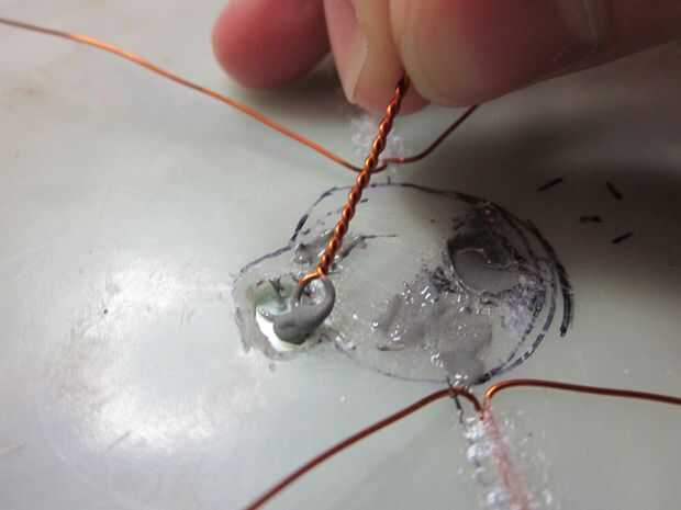 -Cubrir el fondo del titular, y la superficie sobre el disco volador, luego Junte los dos.