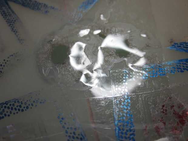 -Conseguir alguna cinta y cubrir los orificios en la parte superior el frisbee para evitar que el pegamento al ras con el frisbee. Para mí, no funcionó como esperaba, pero todavía funcionaba. Tal vez mi cinta fue simplemente mala, no pegajosa que, pero todo va a pulirse más adelante de todos modos.