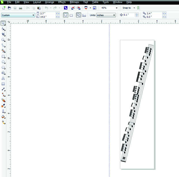El diseño debe dimensionarse según las dimensiones del vidrio. La altura del vidrio se puso en la anchura del diseño y la longitud fue el diámetro x pi. Terminó siendo 3,7" por 14". Esto le daría casi dos vueltas completas del diseño sobre el vidrio.