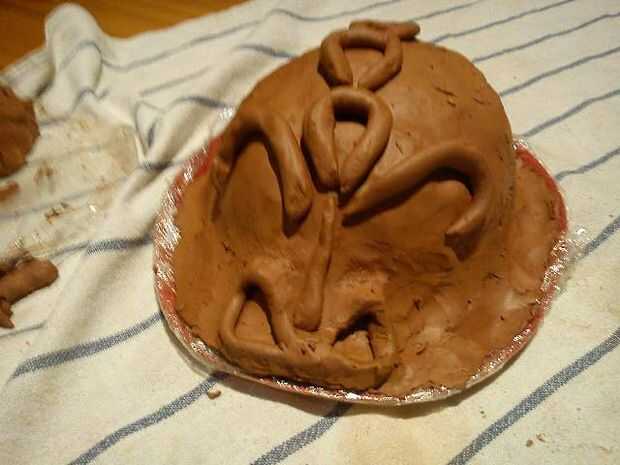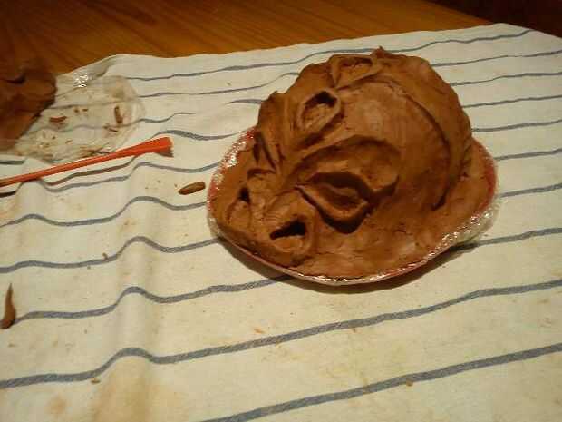 Y cuando usted tiene todo cubierto, comenzar a modelar una cabeza de dragón... Los orificios de la nariz grande, los ojos forma de almendra, la base de los cuernos... etc...