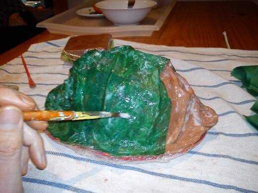 Cuando lo consigues, puedes comenzar a "pintar" la arcilla con la mezcla de pegamento y colocando las piezas hasta que la cabeza esté cubierta mínimo dos veces (Recuerde que si usted cubre la arcilla con el plástico o el jabón es mejor, pero no es obligatorio).