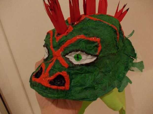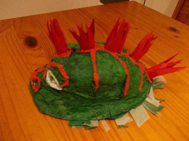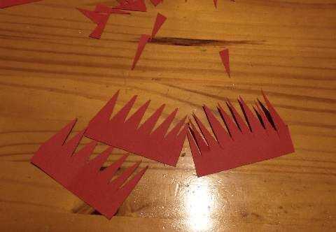 Una vez pintado, corté unas piezas de cartulina roja para hacer los cuernos. Haciendo espinas como un peine de corte, enróllelo y pegado a la bocina con la pistola de pegamento caliente, pero siga por favor las fotos que hacer porque creo que es más fácil entender lo que para hacer los cuernos mirando a ellos...