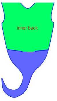 La parte inferior de la pieza frontal es la parte delantera de la cola y va cosida a la pieza trasera para cubrirse con plástico o algún material de peso ligero para hacer una "cola volumed".