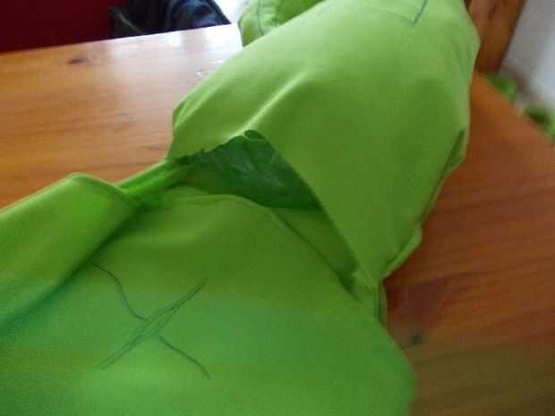 Ahora es momento de tomar las agujas de coser y el hilo verde y coser, coser y coser... y coser un poco más...
