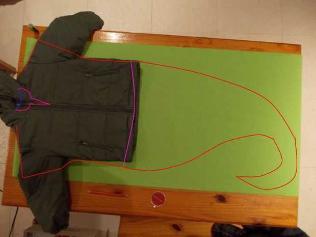 Para hacer el patrón (patrones de sastrería es un arte esto es totalmente desconocido para mí...) Usar chaqueta de mi hijo y un pedazo de tela de alrededor de 2 veces de mi hijo de altura y medio metro de ancho.