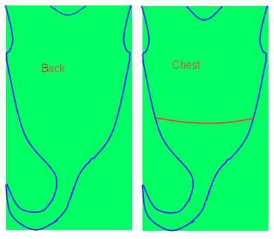 Dibujo la silueta de la camisa entera. Donde los extremos de la pieza frontal es el mismo lugar que comienza de la pieza frontal de la cola, si me no me explico bien, por favor mire las fotos para entenderlo mejor.
