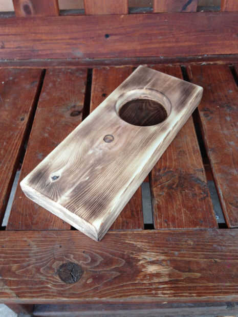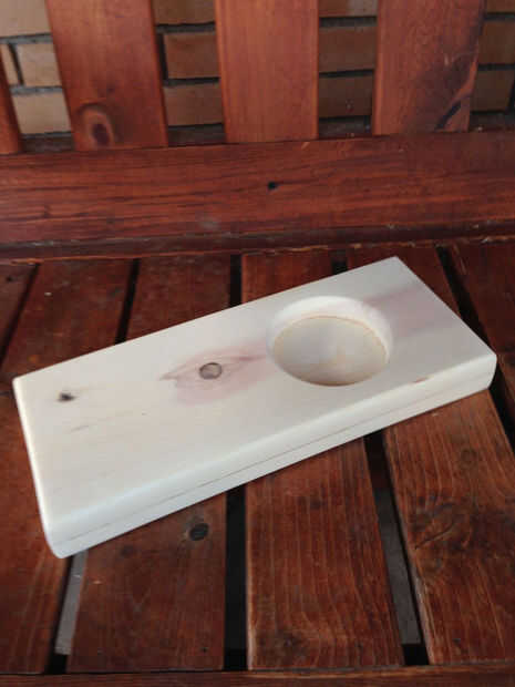Para la base utilicé una pieza de madera de desecho que se cortó en dos. Un 4 en agujero fue perforado en una de las piezas, tanto se pegan, enrutado y arena.